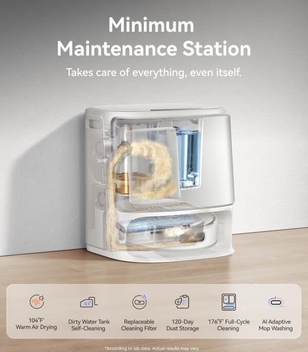Zero-Tangling Cleaning with 22,000Pa Ultra-Strong Suction: This self-emptying robot vacuum delivers deep cleaning power for fine dust and heavy debris alike. The DualFlow Tangle-Free System cleans every angle without hair wrap: a single-side roller brush channels hair directly into the dustbin, while side brushes automatically switch from V-shape to II-shape for effortless maintenance.