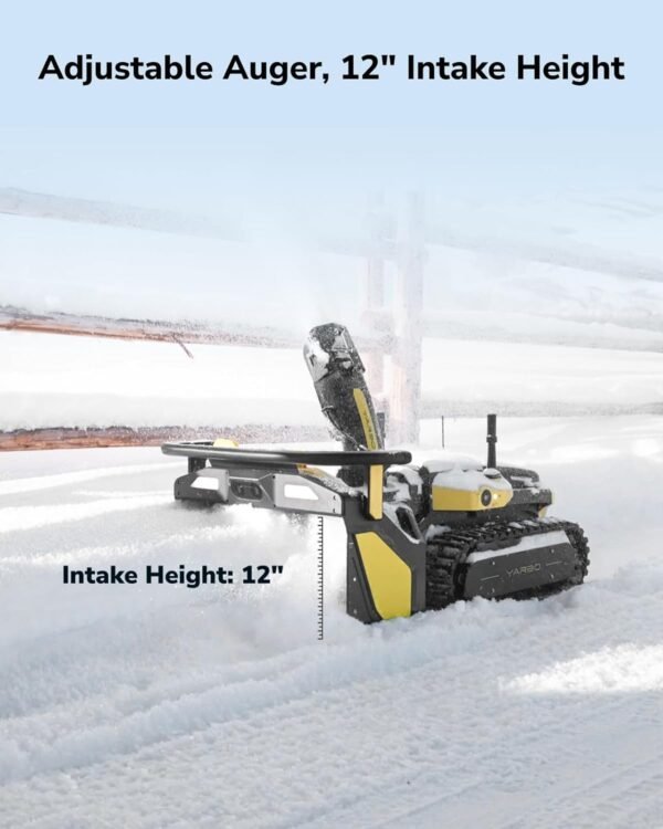 - Yarbo snow blower features a 12-inch intake height, easily handling deep snow, from light powder to heavy, wet slush.